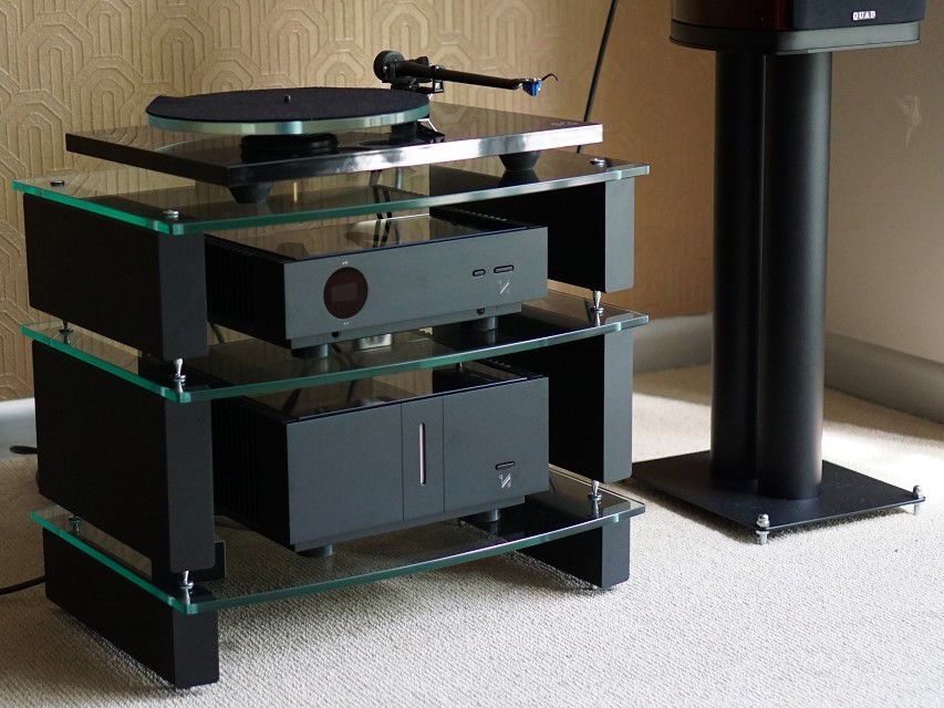 As with all the other stands in Custom Design's Milan range, the modular design can accommodate all the different heights of your various Hi-Fi components and you are not limited to fixed shelf spacing. You can have as many shelves as you need and get the overall height of the stand, especially one with a turntable, to a height that is comfortable for you.