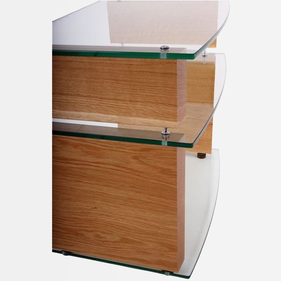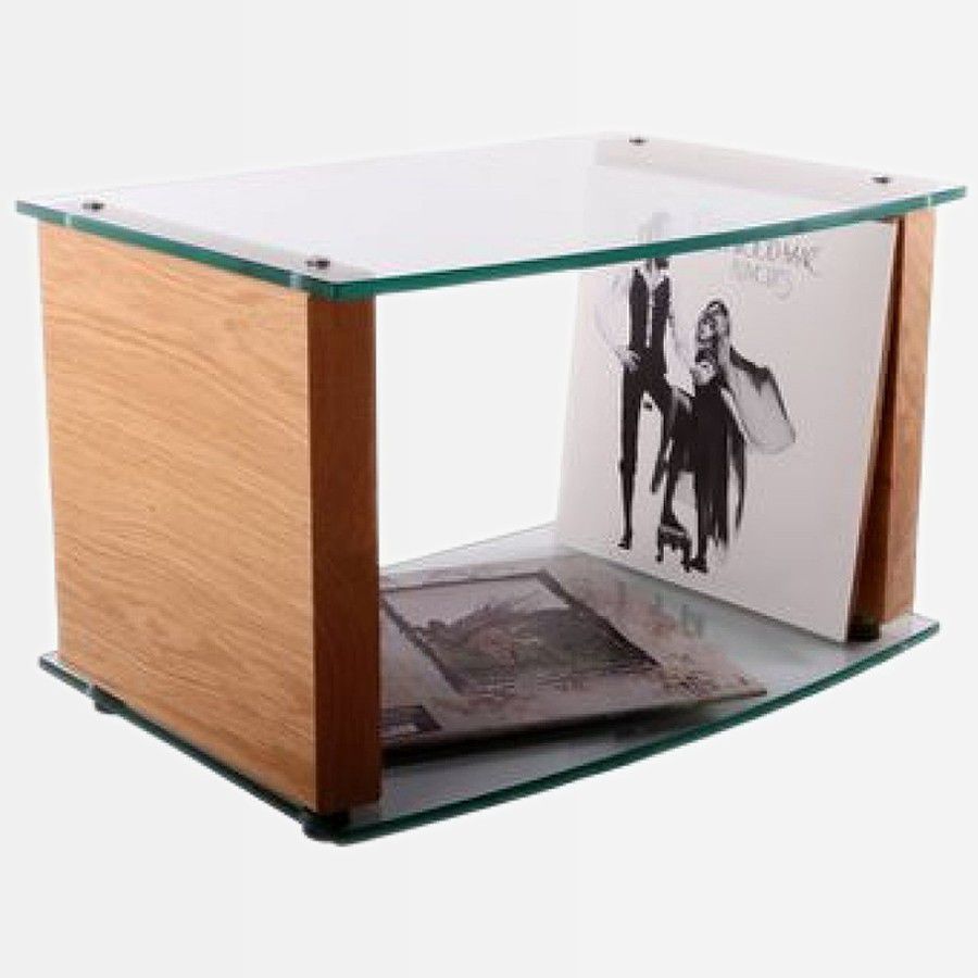 The Vinyl Storage Module’s side pieces are made of solid real Oak, real Walnut, or real Ash hardwoods in a range of finishes including Oak, Walnut, Cherry, Satin Black, and Satin White finishes. The shelves are fully tempered Clear or Black 10mm thick glass with polished edges and a gentle front radius curve. The combination of hardwood and rigid glass offers excellent acoustical properties. Glass is durable and easy to maintain. Each shelf-unit can support 110lbs/ 50kg. The unit comes with footpads rather than spikes.