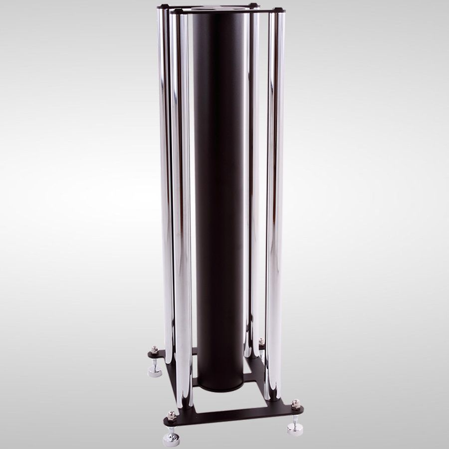 The Custom Design FS 104 Signature speaker stand is the most popular of all the stands that Custom Design makes and is not to be confused with the FS 104 Open Frame speaker stand. The difference is the Open Frame version has four 1" support columns while the FS 104 Signature adds a 3" central column and it is this extra column that is key to its sonic signature. A very high degree of rigidity is attained having four 25mm (1in) satellite support columns and single 76mm (3in) ERW BS EN 10305-3 central column. This 76mm (3in) central column can be easily mass loaded with Custom Design specially selected Inert Filler and the amount of filler used governs the bass performance so it can be fine tuned to suit your particular speakers.