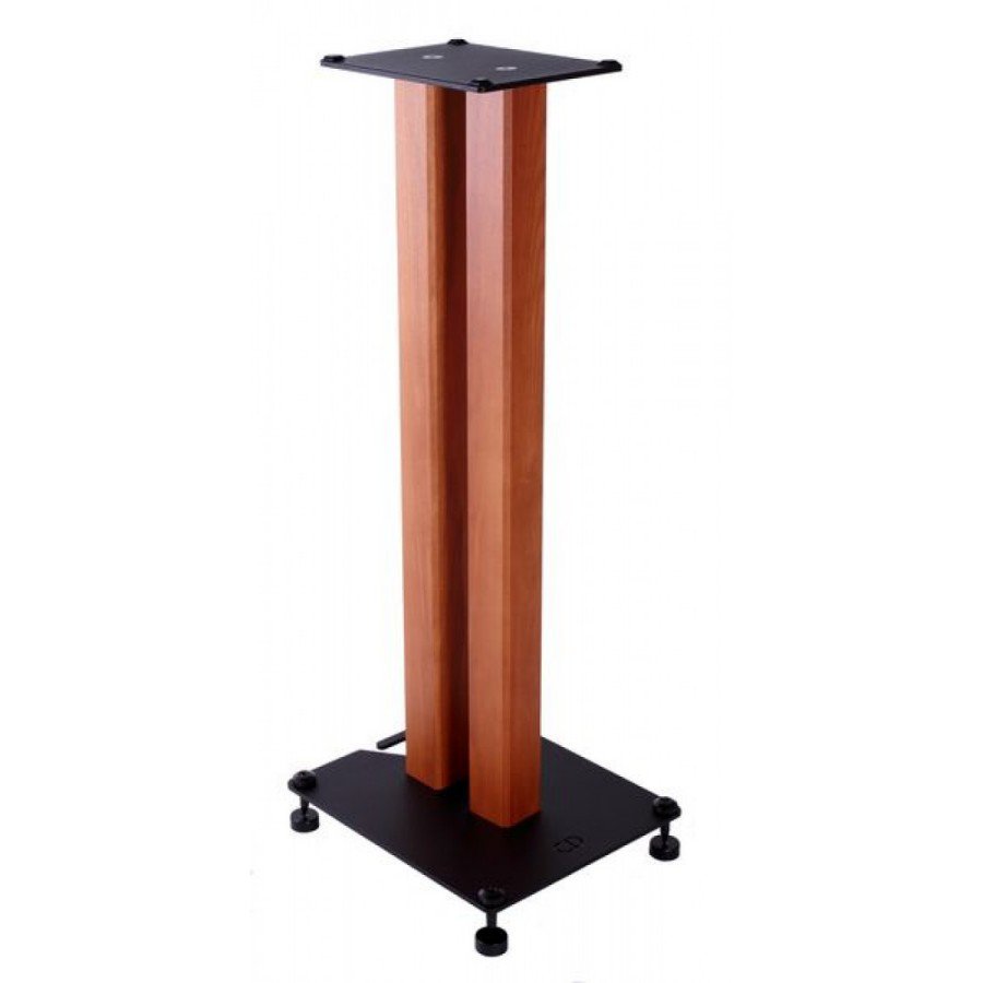 The solid hardwood square support columns are manufactured from solid Ash, Oak or Walnut harvested from sustainable, professionally managed forests and available finished in Black, White, Oak, Cherry, Mahogany, and Walnut. The natural properties of wood dampens resonance noise vibration and this is enhanced by the Acoustic Steel™ top plate, preventing the transition through the design and influencing the stand and speakers performance.